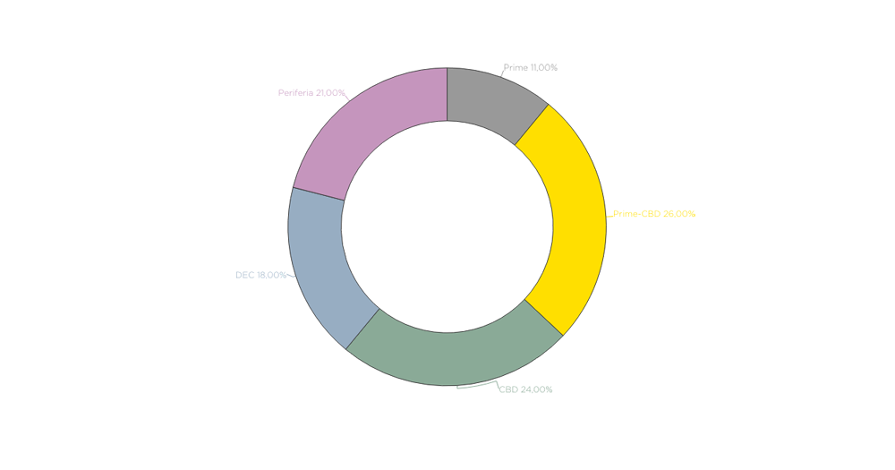 Mapa de zonificación, rentas, stock y pipeline